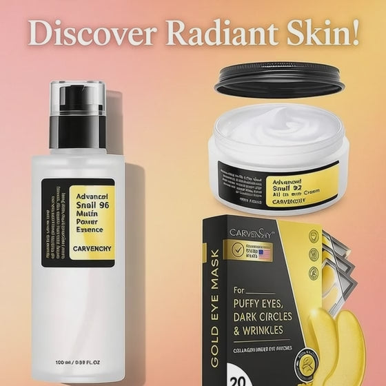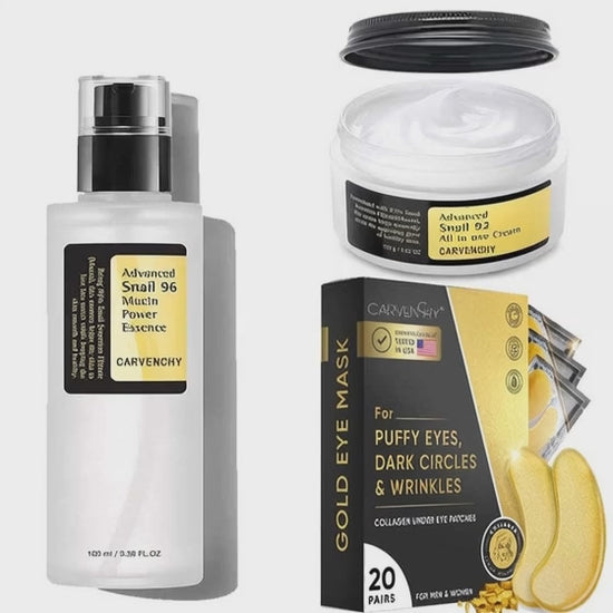 Advanced Snail Mucin 96 Power Essence + All-in-One Cream + Gold Collagen Eye Patches Set | Glass Skin in 7 Days